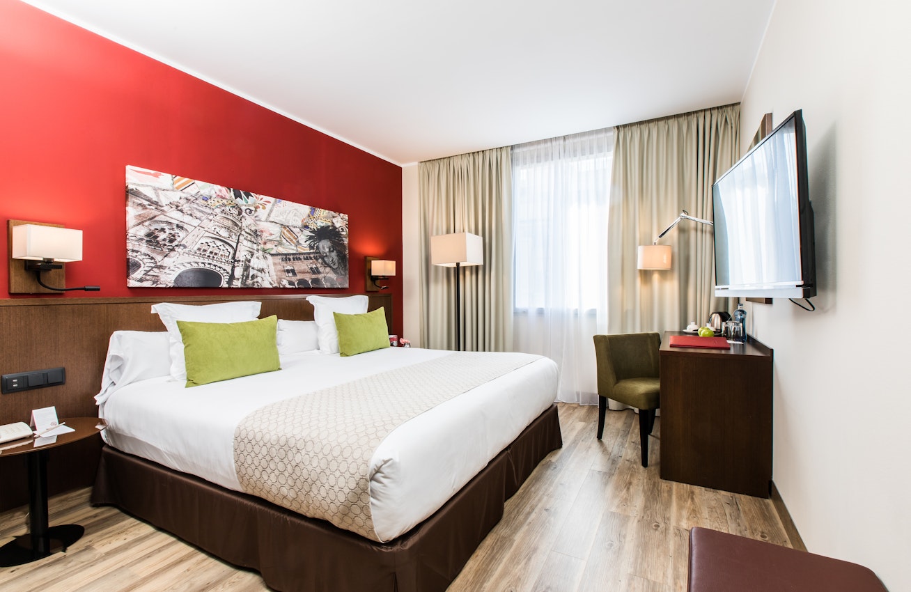 Among bars and eateries in the lively Eixample neighborhood, this unpretentious hotel is a 3-minute walk from the Rocafort metro station, 11 minutes from Plaza Espanya and a 14 minutes from the Fira de Barcelona exhibition center.